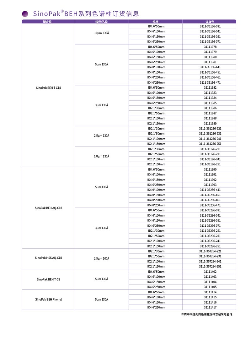 SinoPak BEH 系列高效液相色谱柱